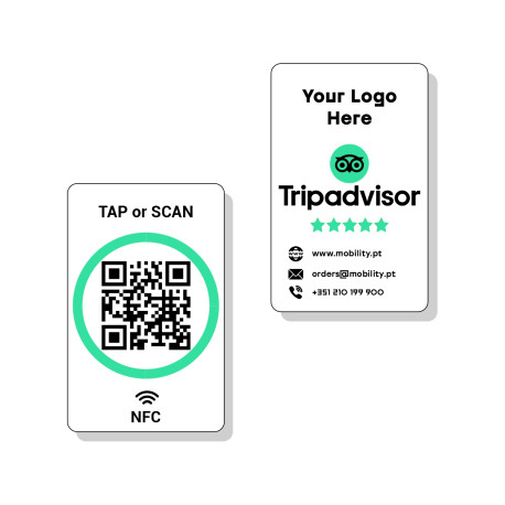 Personalized card with the company logo, QR code and NFC of the Tripadvisor link.
